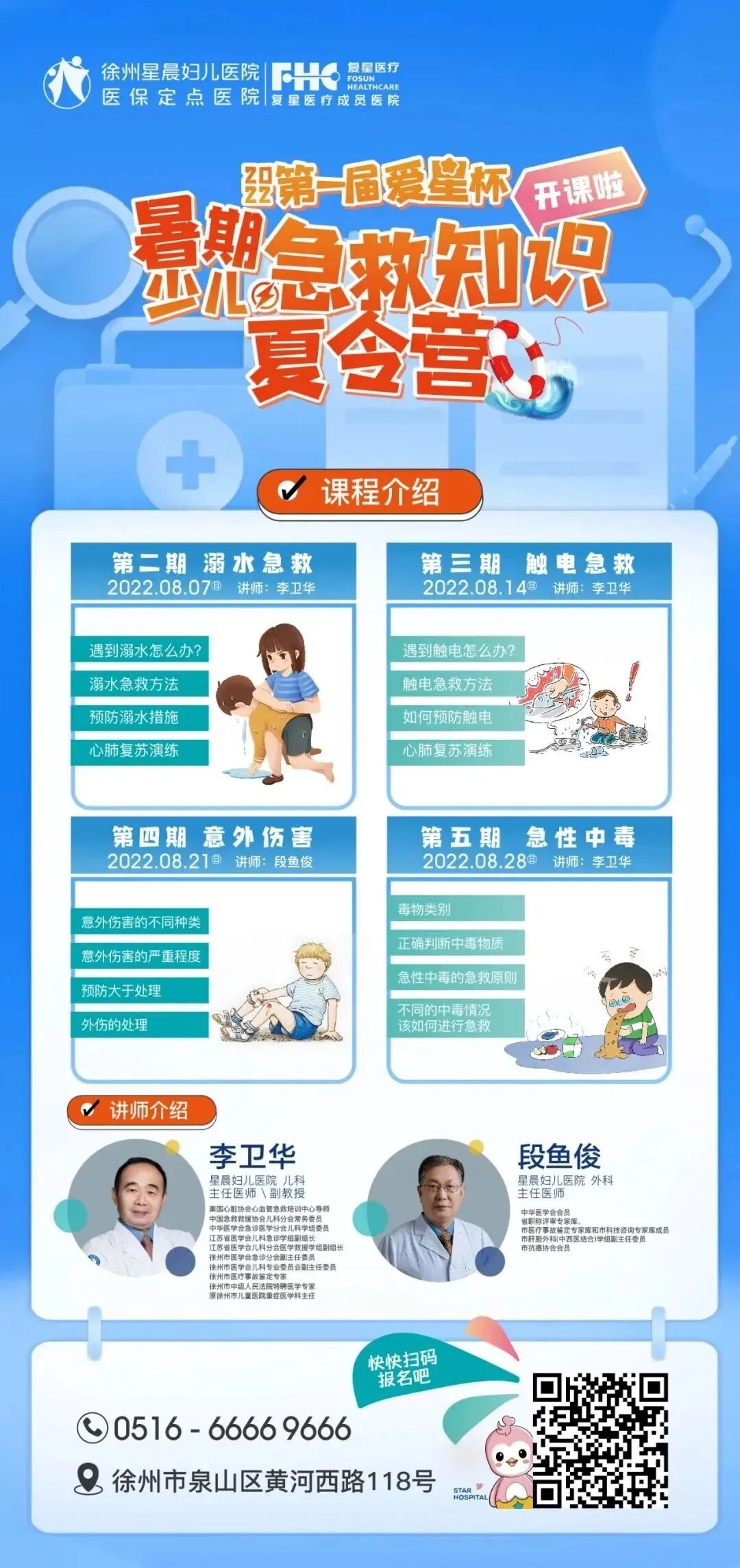 今天的意外伤害急救课程结束了,但是我们星晨传递安全的职责没有结束。本届最后一期暑期少儿急救知识夏令营,给小朋友们带来“急性中毒”的讲解,抓住最后的机会,快快扫码报名吧!