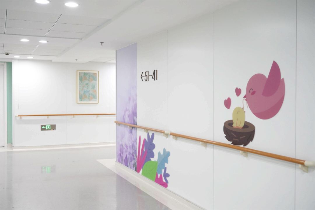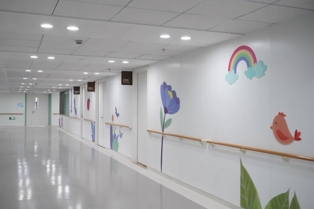 不同于传统医院的单调颜色,新生儿科环境充满童趣,每一块墙面都绘制了大面积富有童趣的图案,色彩斑斓。在儿童诊室还有孩子们喜欢的儿童游乐区,简直是小朋友们的奇妙乐园!