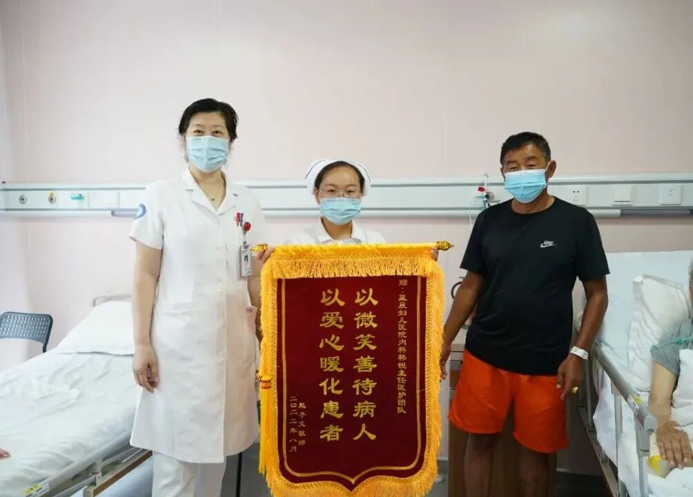 8月2日,一位刚刚经历了脑梗死的患者,将一面写有“以微笑善待病人,以爱心暖化患者”的锦旗,送到了我院内科,以表达对内科医护人员,尤其是韩锐主任的精湛技术和热情服务的赞扬。