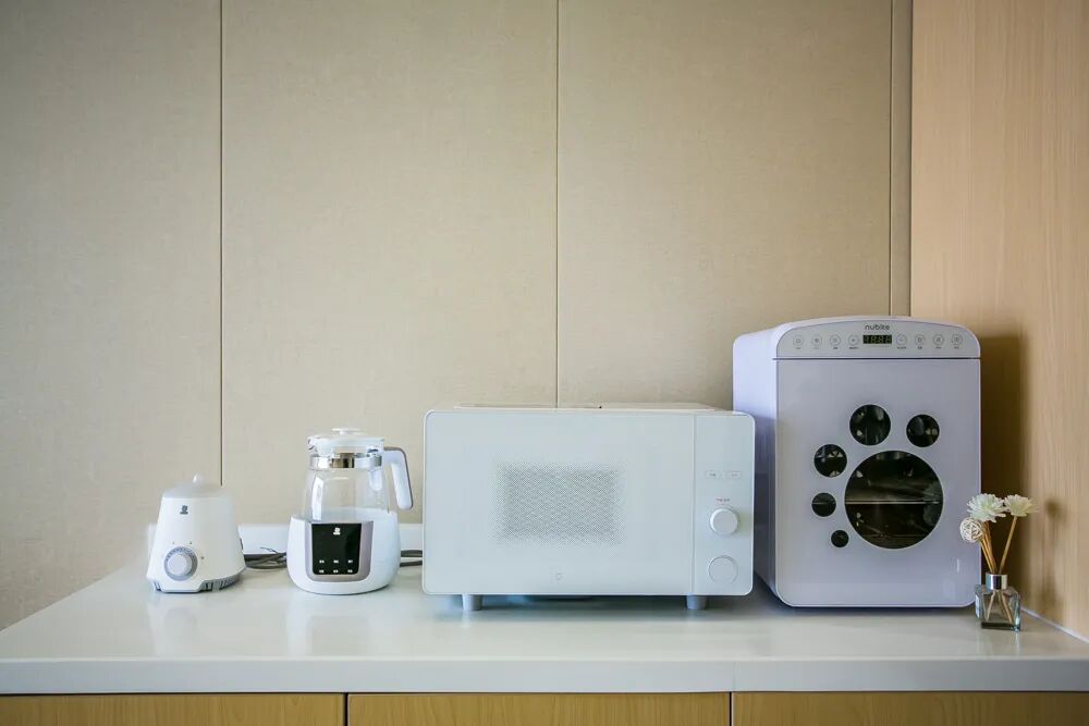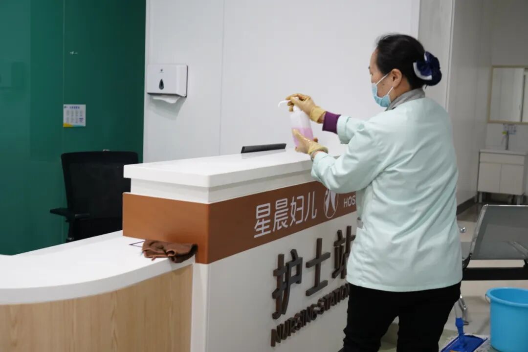 还配有空气消毒机,月子中心房间内有奶瓶消毒柜、空气净化器等设备,房间内保洁人员每天2次进行清洁消毒。