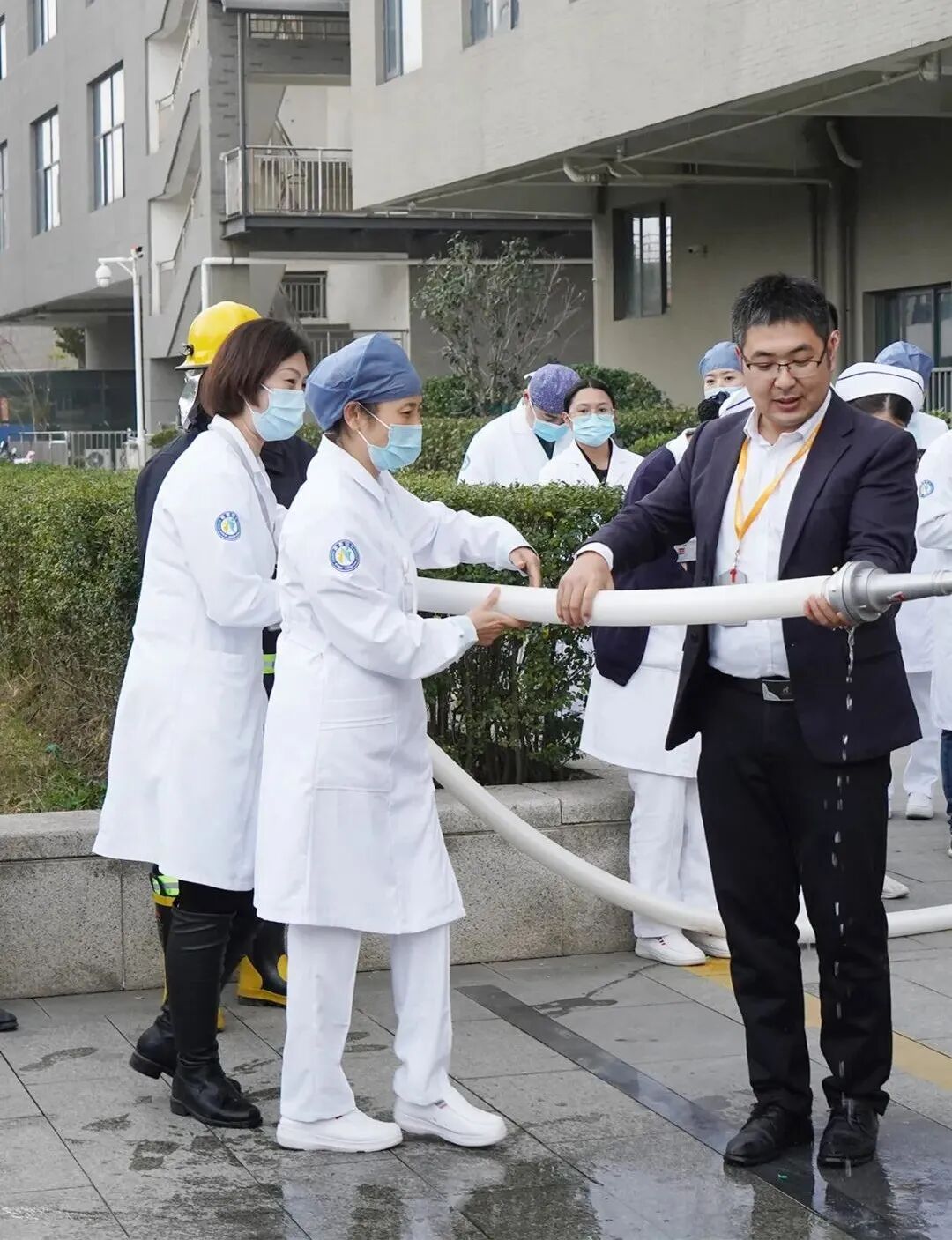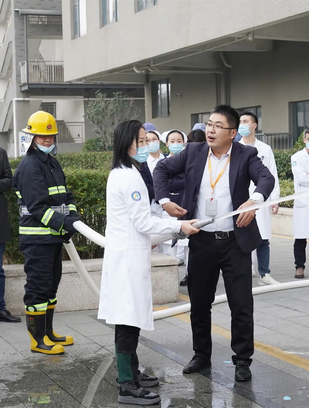 演练开始,儿科医务人员认真开展先期灭火、人员疏散等工作,并引导职工、病人从各个安全疏散出口迅速有序地疏散到安全地点。指挥调度、疏散患者、医疗救护、后勤保障、通讯联络、安全救护全面推进,整个演练中各个环节紧张有序、忙而不乱,检验了医院职工、应急灭火队员的应急救援能力,强化了团队配合意识。在演练结束后,全院职工还进行了灭火器和消防栓的实战演练。综合保障部经理赵衍旺为大家讲解常见的干粉灭火器的使用方法,以及消防栓的接驳和使用。“一提二拔三对准四喷射,距离火源3~5米,对准火苗根部,喷出干粉,将火灭尽;消防水带水压较大,大家实际操作时候,要注意两个人一组。”赵经理特别强调,灭火的时候一定要站在火源的上风处,要对准火源根部喷射,提高灭火效率,争取最短时间内扑灭明火。演练结束后,董事长刘强进行了演练总结,他指出:消防无小事,事关每个人的生命安全,各部门要时刻保持警惕,警钟长鸣,全面做好安全工作,保障医院职工、患者及家属人身、财产安全。通过消防演练,进一步增强了我院职工的安全意识,提高了医务人员应对突发事件的处置能力,确保在灾害来临时快速、安全疏散患者和职工,为患者和家属打造更加安全安心的就医环境。